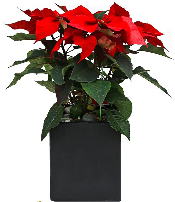윗부분의 잎이 빨갛게 되어 수레바퀴 모양으로 퍼져 있는 모습이 마치 꽃처럼 보이는 포엽은 보통 밝은 붉은색을 띠지만 노란색이나 흰색을 띠는 것도 있습니다. 밝은 붉은색을 띠는 포엽이 녹색 잎과 뚜렷이 대비되기 때문에 크리스마스 계절에 장식용으로 인기가 있습니다.